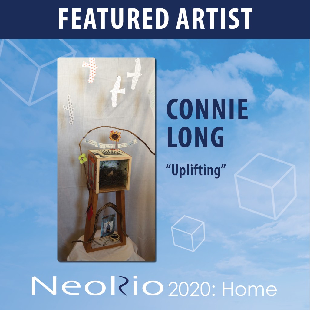 Connie Long is a builder of home and family and wood toymaker living and working north of Questa, NM. Her piece represents an Air B&B for migrating birds and the “uplift” that she’s felt by providing for, observing and learning about the incredible qualities and human advocates of “these feathered wonders.”