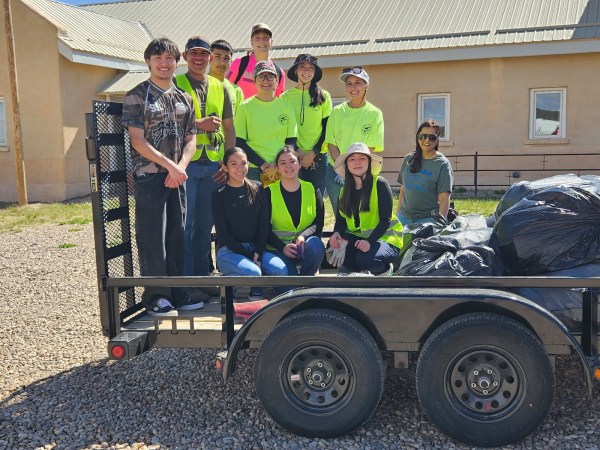 - Students and Jr/Sr. Honors Society Sponsor Santana Santistevan at 2025 Earth Day Clean-up with collection trailer. Photo Courtesy of Lorenzo Gutierrez.