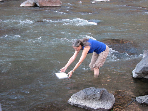Fulbright Scholar, Basia Irland is an author, poet, sculptor, installation artist, and activist who creates international water projects. Many of these projects are featured in her books, Water Library (University of New Mexico Press, 2007) and Reading the River: The Ecological Activist Art of Basia Irland (edited with Museum De Domijnen, 2017). These books focus on projects the artist has created over four decades in Africa, Canada, Europe, South America, Southeast Asia, and the United States.