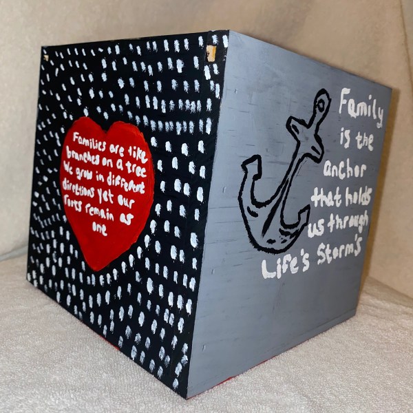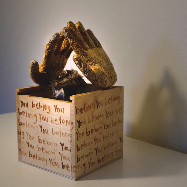 This community art and story exhibition showcases responses to the invitation to ponder the theme of home during a pandemic. All participants who responded to the open call for submissions were provided with a common starting point: a 7x7x7” wooden box with a removable lid, made specially for this project, as well as the prompts, “What does home mean to you? Think inside and outside the box!” Each participant was also asked to submit a short audio reflection or story on home.