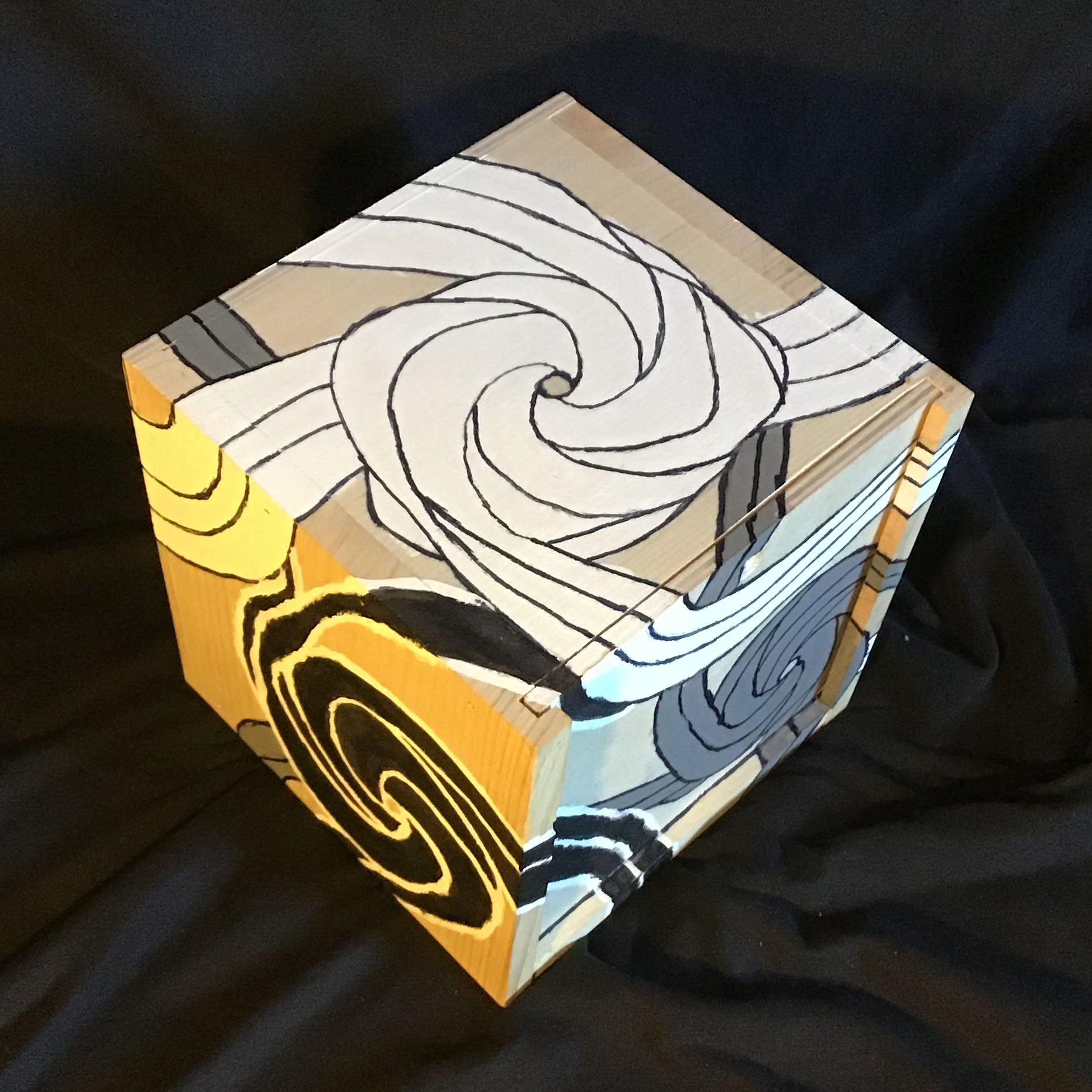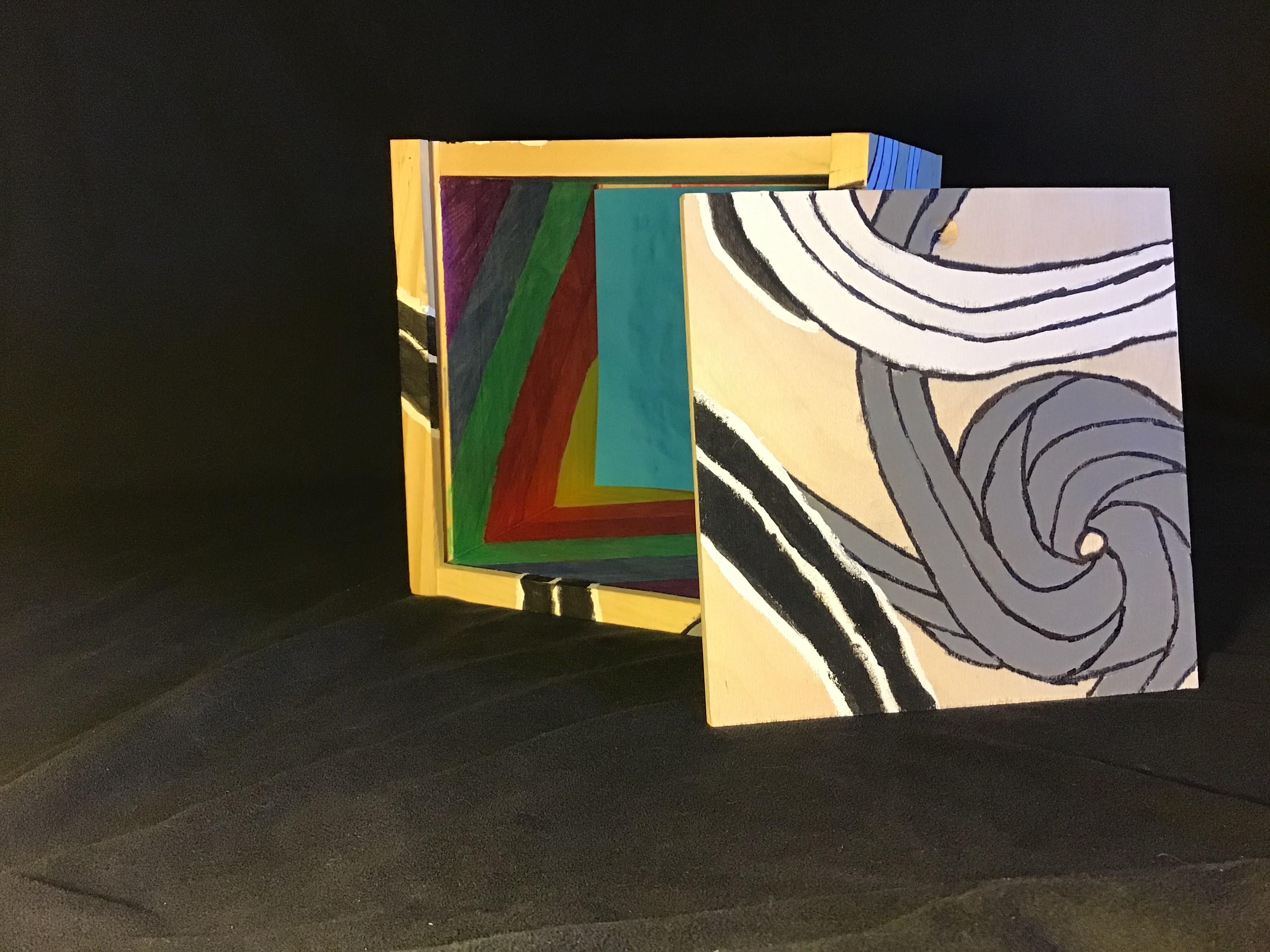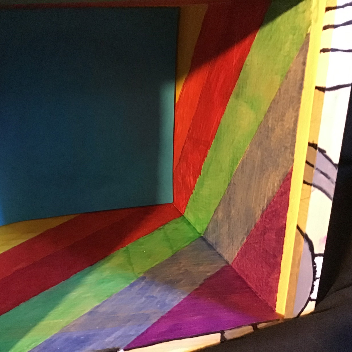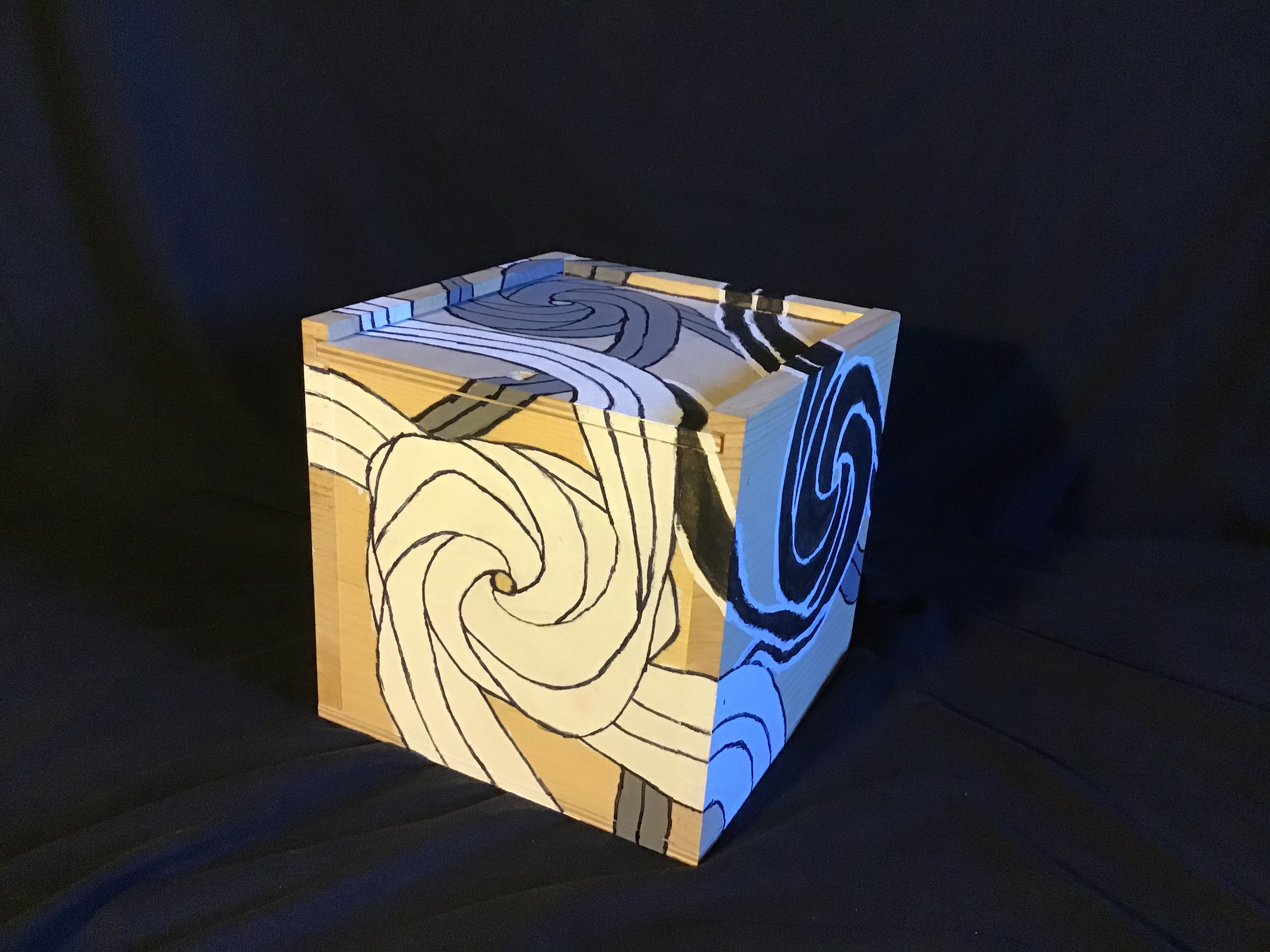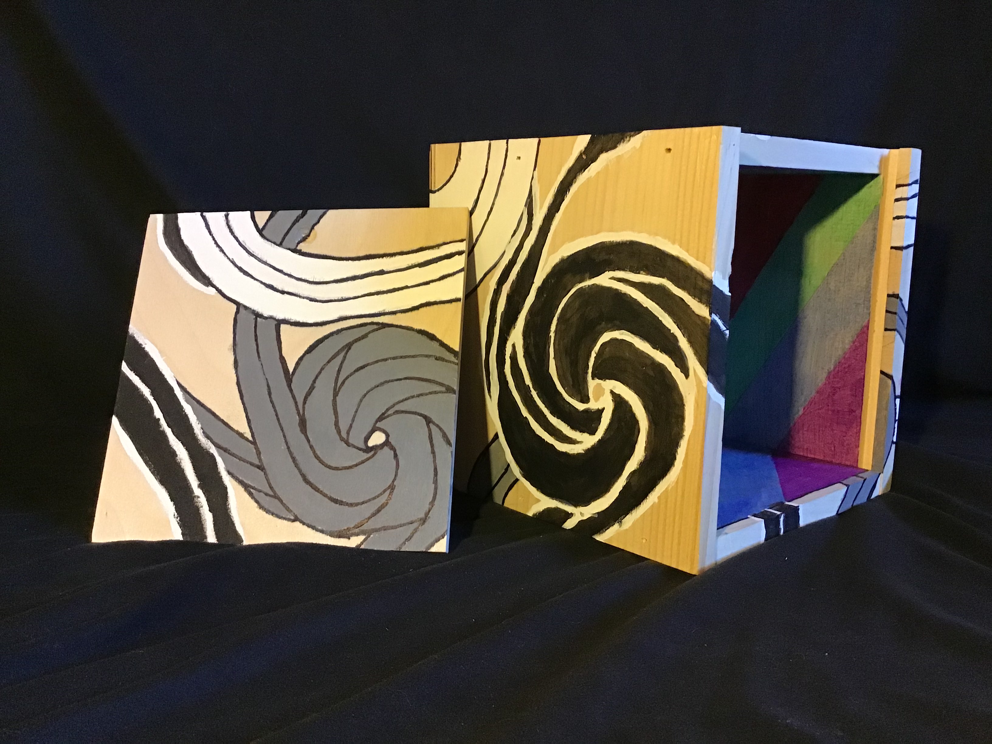 My idea for my box came from how confused and contained people’s happiness is right now so on the outside of my box I drew confusing swirls and colored them with dark colors like gray black and white. And on the inside you will open it and you will see a blast of color such as red orange green purple yellow.and that represents the happiness that is hidden inside everyone we just need to find it underneath all the darkness of the world.