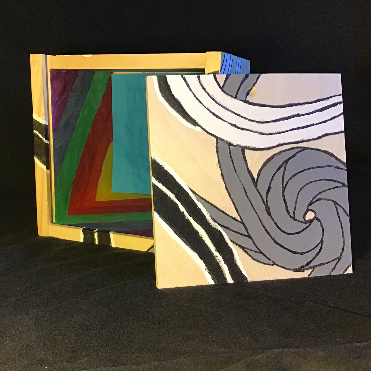 Materials: acrylic paint (gray, black, white) sharpies (red, orange, yellow, teal, purple, blue)