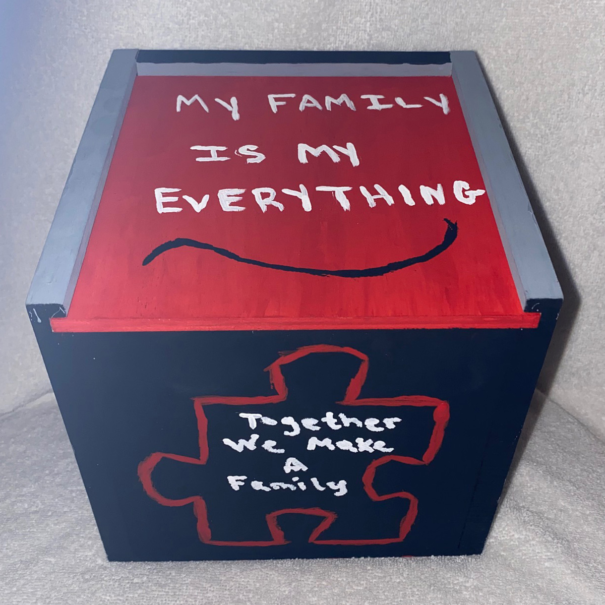 I came up with idea of family because it had to do with something of home and when I think of home, I always think of my family. It means I can use this box to describe how much my family means to me and how much I need them in my life. This box describes how much I love my family and appreciate them because with out them I would not be the person I am today and not be where I am today.