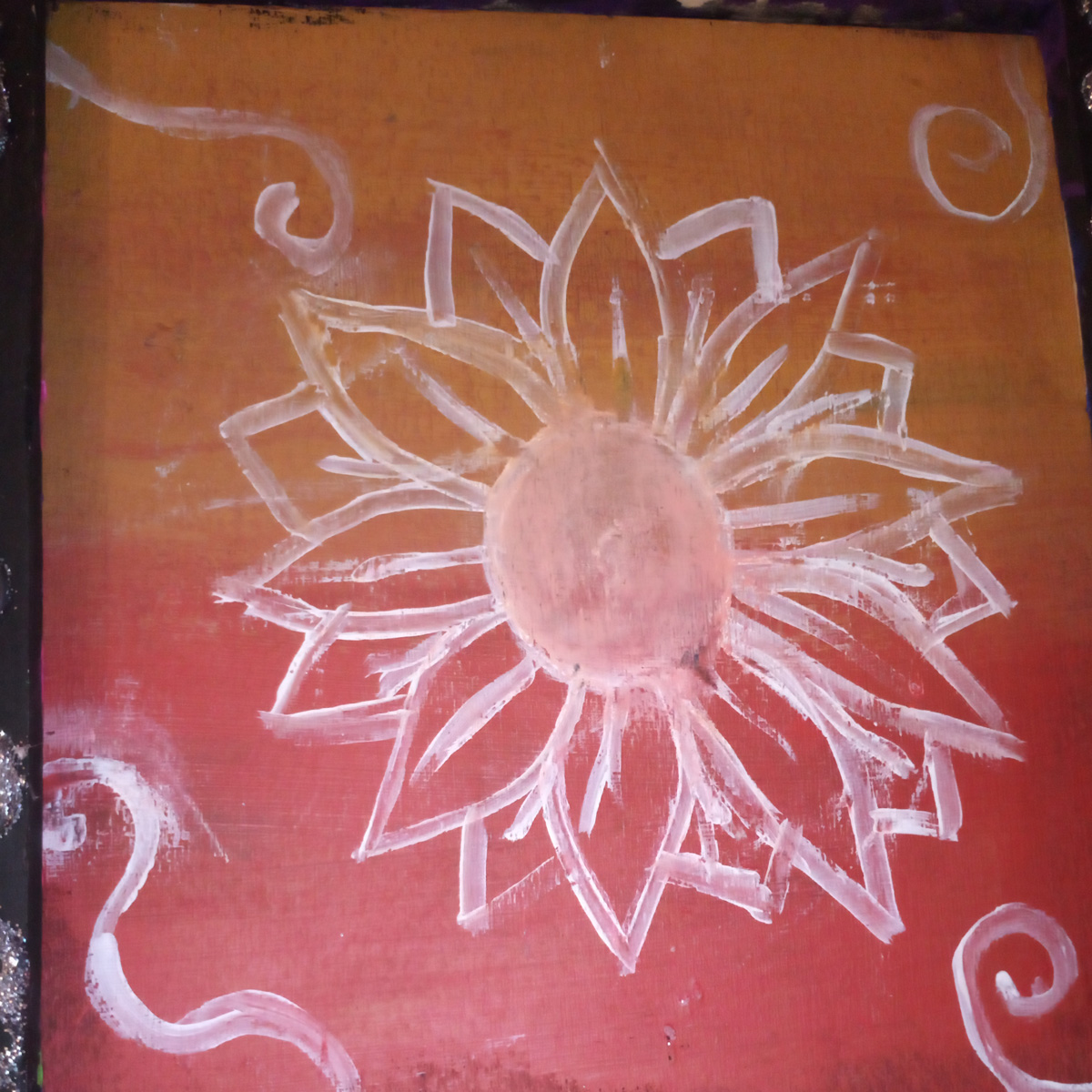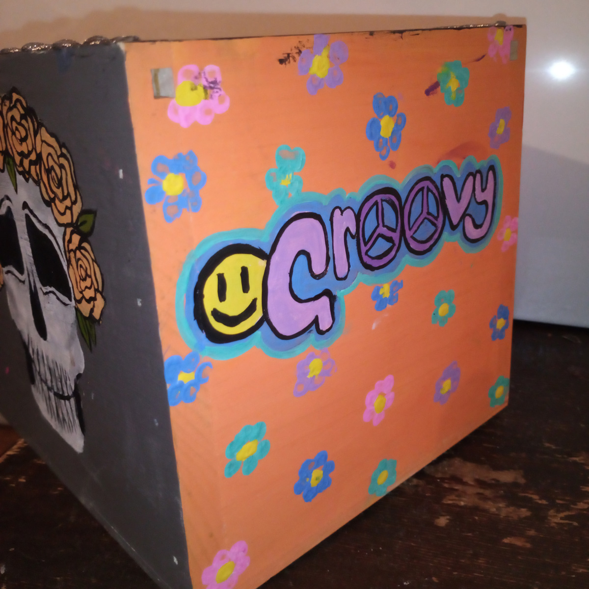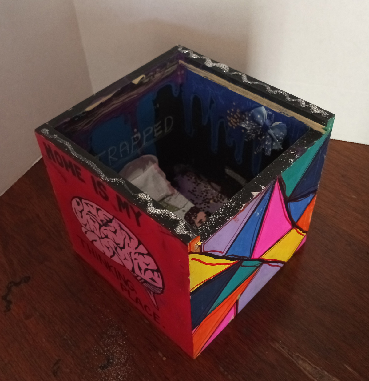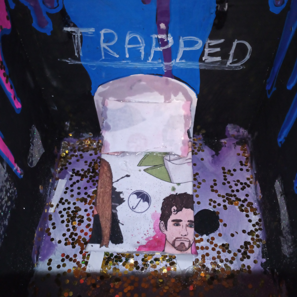 Materials: acrylic paint, glitter, ribbon, paper, material, Altoids tin