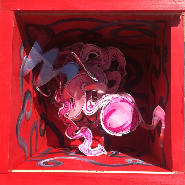 Materials: acrylic paint, sharpie, paper, plastic sheets