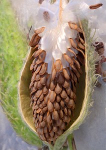 About work “Milk Weed” at NeoRio, he says: Milkweed, everywhere! At this time of year this humble plant exposes itself unabashedly to the countryside. The seeds, attached to the silky floss, are carried on the wind to the wild places where, this plant thrives. I like the fact that this plant cannot be tamed and readily cultivated, (Standard Oil tried); it is essential to to the existence of the Monarch Butterfly, and sans the Milkweed, no Monarch butterflies. Interesting note: the floss of the plant is used by the Ogallala Comforter Company in manufacturing hypo-allergenic comforters and to help protect the Monarch Butterfly’s habitat.