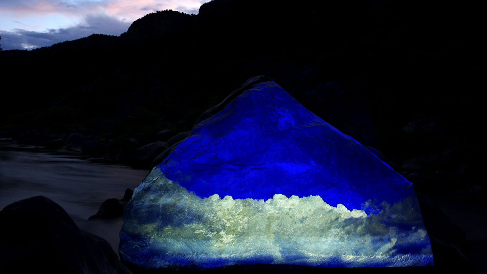 Jeanette Hart-Mann and Ryan Henel during 2017 LAAW, Sunrise Sunset Rio Grande Wild Rivers, Video Projection, 2017
